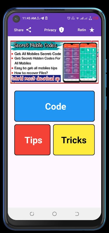 Dapatkan helah dan petua Mudah Alih yang hebat untuk semua kod rahsia Android yang akan membantu anda meningkatkan pengetahuan anda. Anda akan menemui helah dan petua teknologi terkini untuk buka kunci peranti Android anda. Semua perkara dijelaskan dengan baik langkah demi langkah. Kekal berhubung dengan apl kami dan dapatkan panduan Mudah Alih tentang rahsia petua Android. Kami terus menambah petua dan ciri untuk helah mudah alih Android. Pengguna dimaklumkan melalui kemas kini terkini.