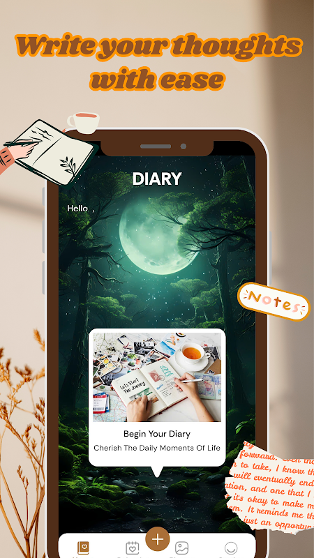 Antara muka kami yang bersih dan intuitif menjadikannya mudah untuk mula menulis. Buat entri jurnal dalam hanya beberapa ketikan dan peribadikan setiap satu untuk benar-benar mencerminkan perasaan anda.