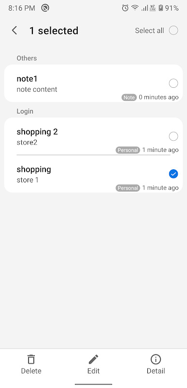 - Banyak kategori dan bidang (Login, Kad, Catatan ...) dengan disesuaikan sepenuhnya