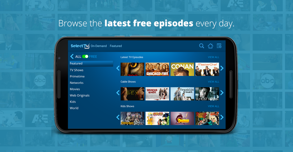 Select TV searches the mobile web and other apps to find all of the TV episodes and movies available online. Looking for the latest episode of your favorite show? We’ll tell you where you can watch it, whether it’s free, pay-per-view or available with one of your existing subscriptions like Netflix or Hulu.