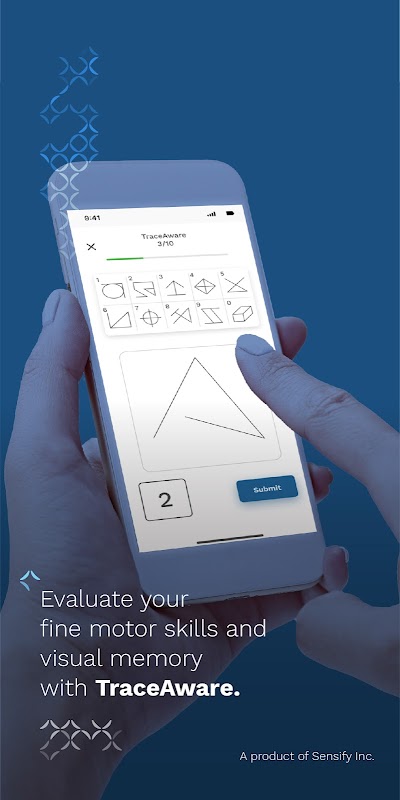 • Aplikasi SensifyAware juga mengandungi ujian untuk fungsi kognitif untuk memberikan penilaian penuh kesihatan otak anda. Apl ini telah diilhamkan oleh dekad penyelidikan dan pendigitalan ujian kognitif berasaskan kertas.