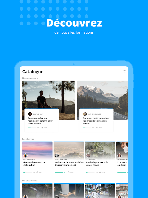 Anda akan dapati kursus latihan aplikasi ini yang berkaitan dengan profesion anda, modul mengenai budaya kami, tentang keselamatan, latihan bahasa, dan lain-lain lagi.
