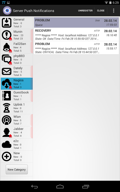 This app enables webmasters and developers to recieve own push notifications and messages on your android powered device in the most easiest way from nearly any place and service or monitoring software you want. (no fees, no web account needed)