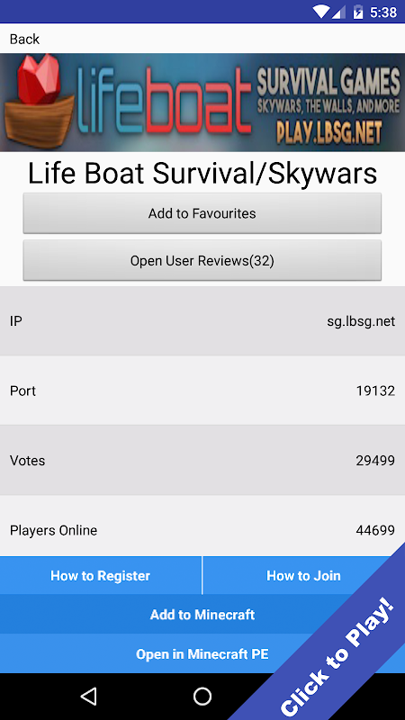Use this app to find the best servers for minecraft pe for free.
