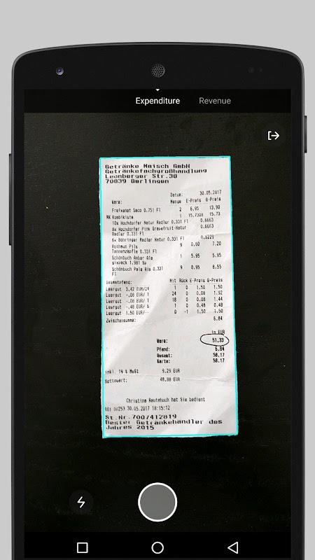 The voucher image is automatically adapted and improved so that all the voucher data can be identified. Documents can also be scanned in the dark thanks to the integrated flash function.