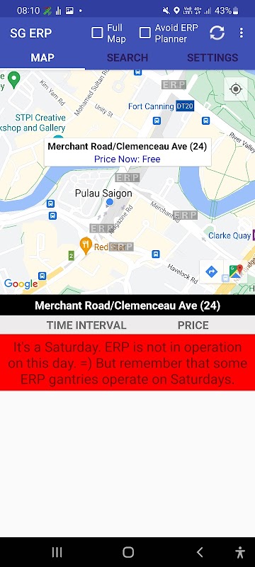 Maklumat APK SG ERP: Rates & Avoid ERP