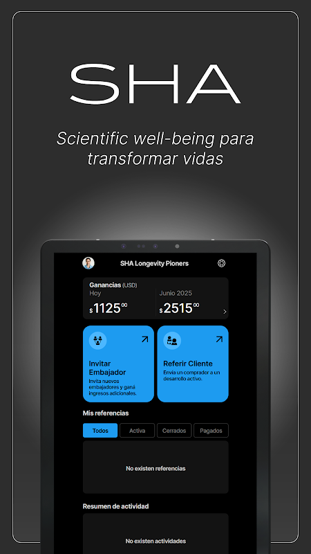 SHA Ambassadors ialah platform eksklusif untuk ahli program Perintis Awet Muda SHA. Ditujukan untuk kesihatan, sukan, sains dan profesional kreatif, dan pemimpin pemikiran yang komited untuk memajukan kesejahteraan, aplikasi ini membolehkan anda mengurus penyertaan anda dalam komuniti dengan cekap, membuat susulan terhadap cadangan dan bekerjasama dengan SHA Wellness.