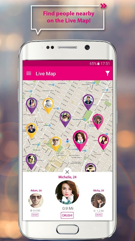 Enjoy a new way to meet people nearby on the live map! Stop Swipe & Start Shake!