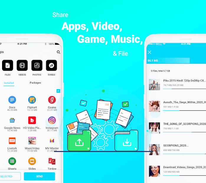 Share Files :Indian Share it, Fast File Transfer An excellent file sharing and transfer app with lightning fast transfer speed and friendly UI, transfer files without mobile data and internet.
