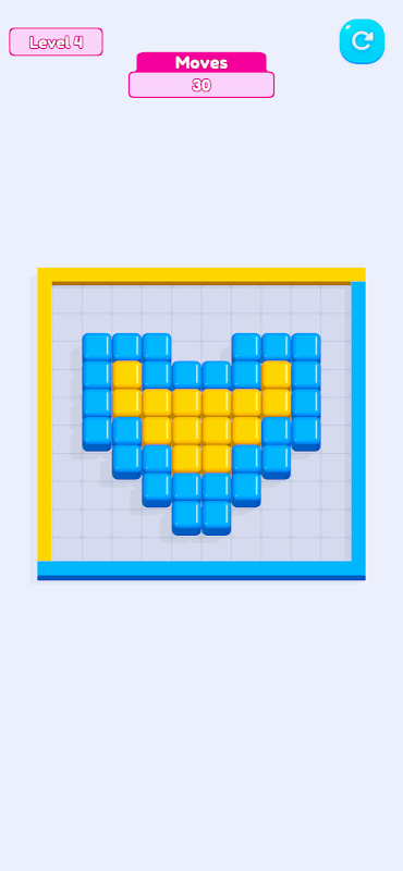 Leret untuk mengalihkan blok, padankan warna dengan tepi dan pecahkan kiub!