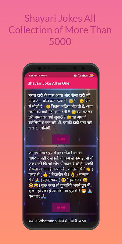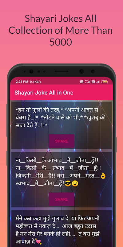 Shayari Joke All in One have huge categeory of Jokes and Shayari