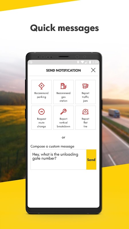 Berkomunikasi dengan mudah dengan penghantar, perancang laluan pengurus armada.