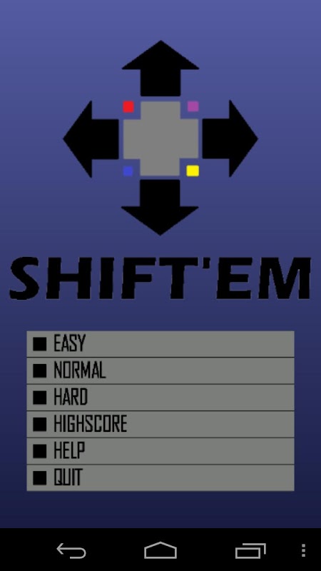 SHIFT'EM is a puzzle game. Click Left, Click Right, Click Up or Click Down to have the blocks move in that direction as long as there is an open space for them to move to.