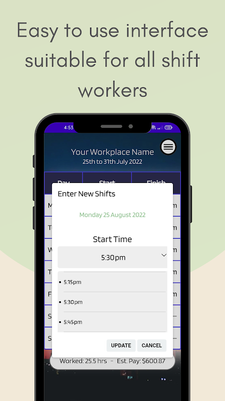 Kekal teratur dan menjejaki jadual giliran anda dan masa bekerja dengan mudah