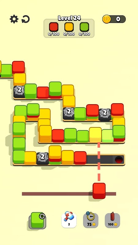 Matlamat anda adalah untuk membersihkan semua objek pada tahap dan mengelakkan halangan.