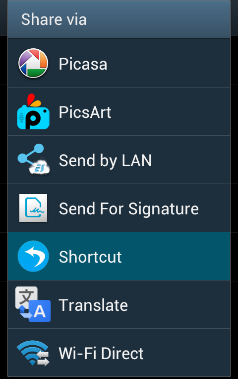 Anda boleh membuat pintasan pilih menggunakan aplikasi atau hanya menggunakan saham melalui fungsi peranti anda.