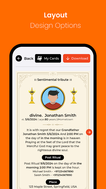Apl ini membantu mencipta kad penghormatan semasa berkabung. Ia menawarkan pelbagai pilihan dan reka bentuk untuk kad ini, menyampaikan mesej penghormatan dengan jelas dan emosi. Dengan aplikasi ini, anda juga boleh mendapatkan bantuan untuk mengatur perkhidmatan peringatan, mesyuarat takziah dan upacara. Anda boleh meluahkan emosi dan sentimen anda melaluinya. Apl ini kaya dengan ciri dan mudah digunakan, membolehkan anda mengusahakannya dengan kerap tanpa perlu bersusah payah. Ia merupakan pilihan terbaik untuk menghubungkan orang yang anda sayangi dan rakan sekerja dengan perasaan anda