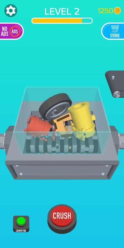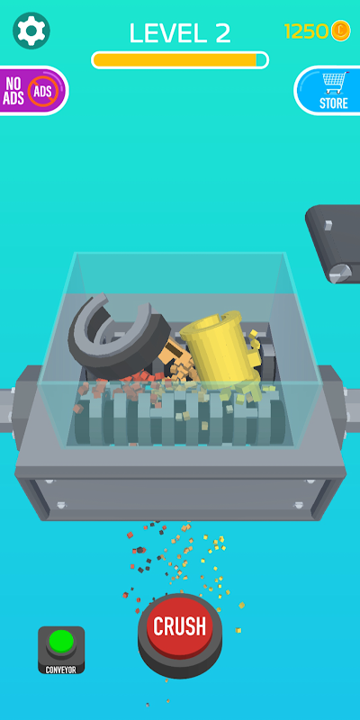 Drop objek ke dalam mesin pencincang dari barisan penghantar dan menonton smash mereka, mendapatkan syiling dan membuka objek baru untuk penglihatan yang lebih besar!
