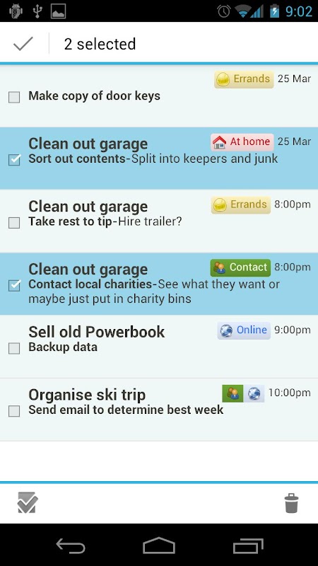 * Quick add bar for actions, contexts and projects