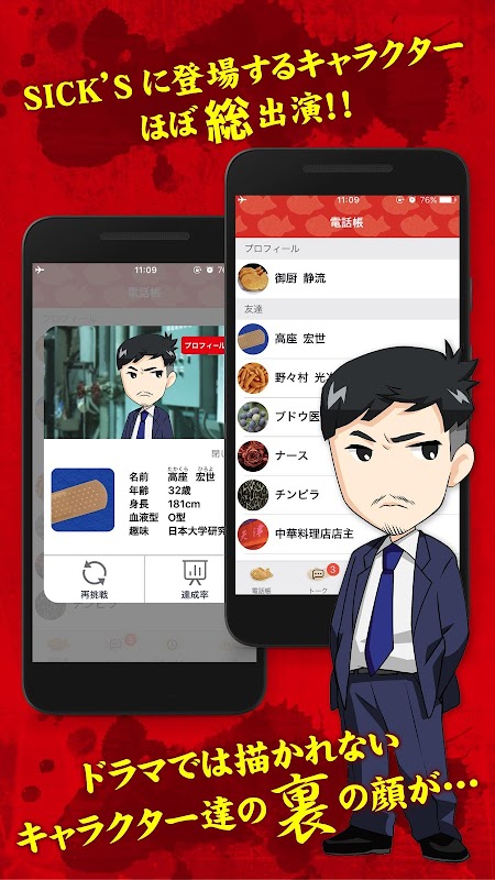 「SICK’S 恕乃抄」に登場するキャラクターほぼ総出演でお届けするチャット風シミュレーションゲームアプリ!