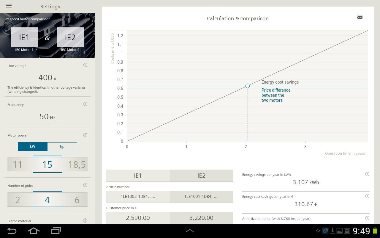 You can send the results calculated with the SIMOTICS EE-COMPARATOR directly from the app by e-mail.