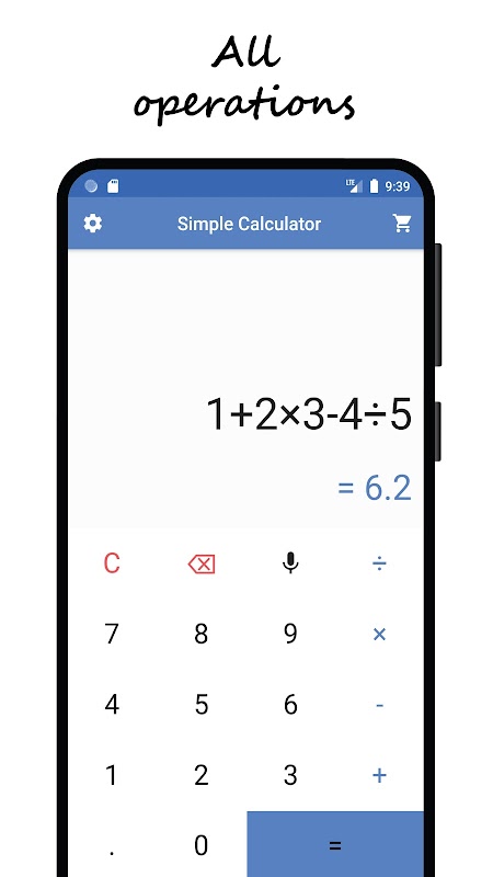 Aplikasi kalkulator mudah direka bentuk untuk menunjukkan susun atur yang mudah untuk membolehkan anda melakukan pengiraan dengan cara yang mudah tanpa banyak komplikasi yang tidak perlu.