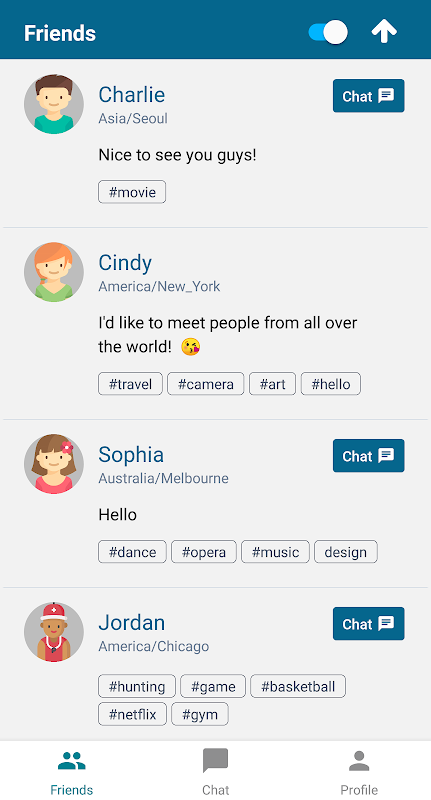 SimpleChat membantu anda untuk berbual dengan orang dari seluruh dunia yang berkongsi minat anda. Ia sangat mudah dan senang. Cubalah sekarang!