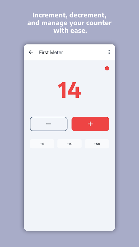 Cipta, namakan dan tukar kaunter dalam beberapa saat. Tambah atau tolak dengan satu ketikan, edit dengan selamat dengan tetapan semula yang boleh disahkan dan namakan semula. Reka bentuk ringan dilancarkan serta-merta dan memastikan ibu jari anda dekat dengan aksi.