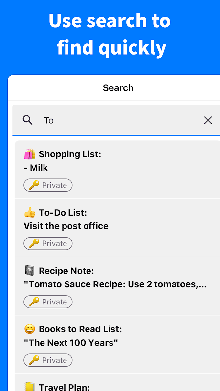 Cari secara instan melalui semua catatan untuk mengakses informasi yang Anda butuhkan dengan cepat.