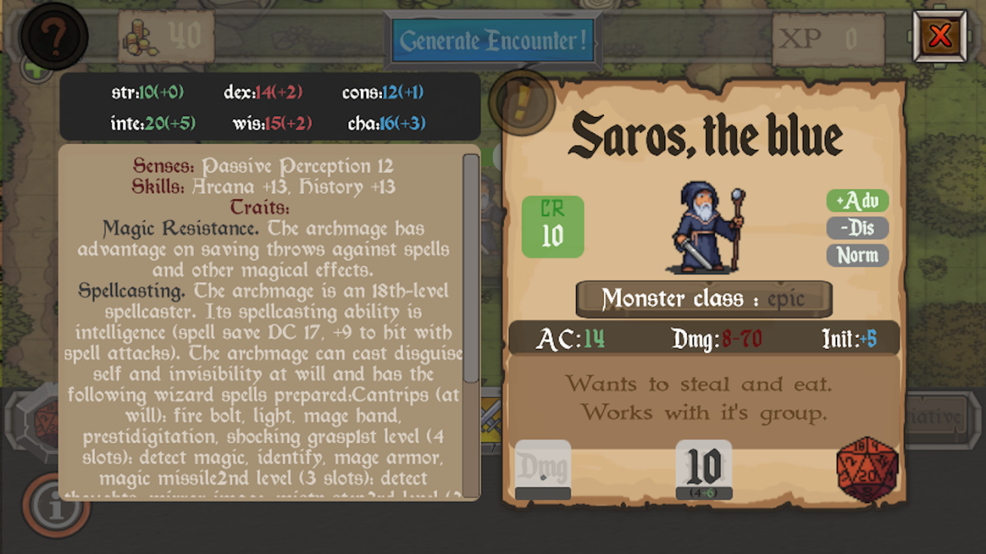 Sama ada anda seorang DM pemula atau seorang pencerita veteran, apl ini membantu anda berlari dengan pantas, menarik dan pertempuran taktikal: