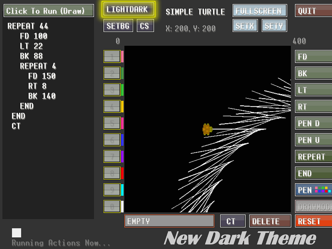 New: Brackets mode [ ], PE Penerase, Hide / Show Turtle, Longform command support if users wish to use longer command names