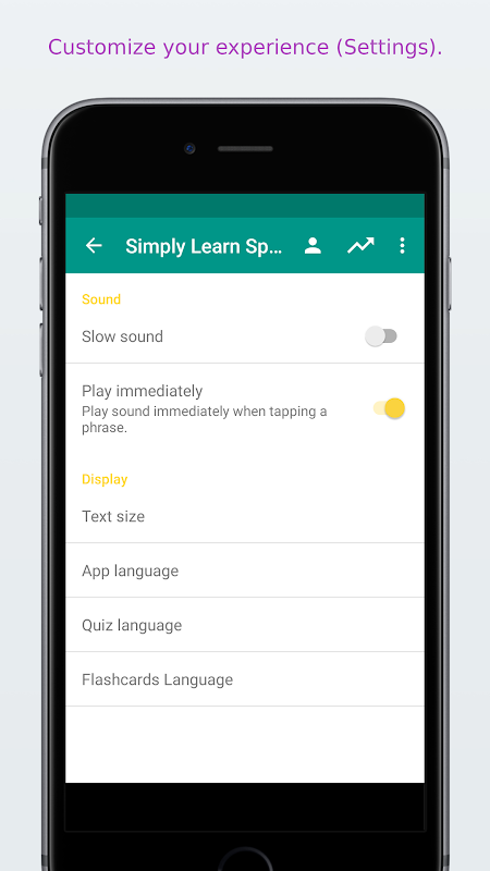 * Laraskan tetapan bagi kuiz dan kad kilat untuk Orang Sepanyol -> Bahasa Inggeris, Bahasa Inggeris -> Orang Sepanyol