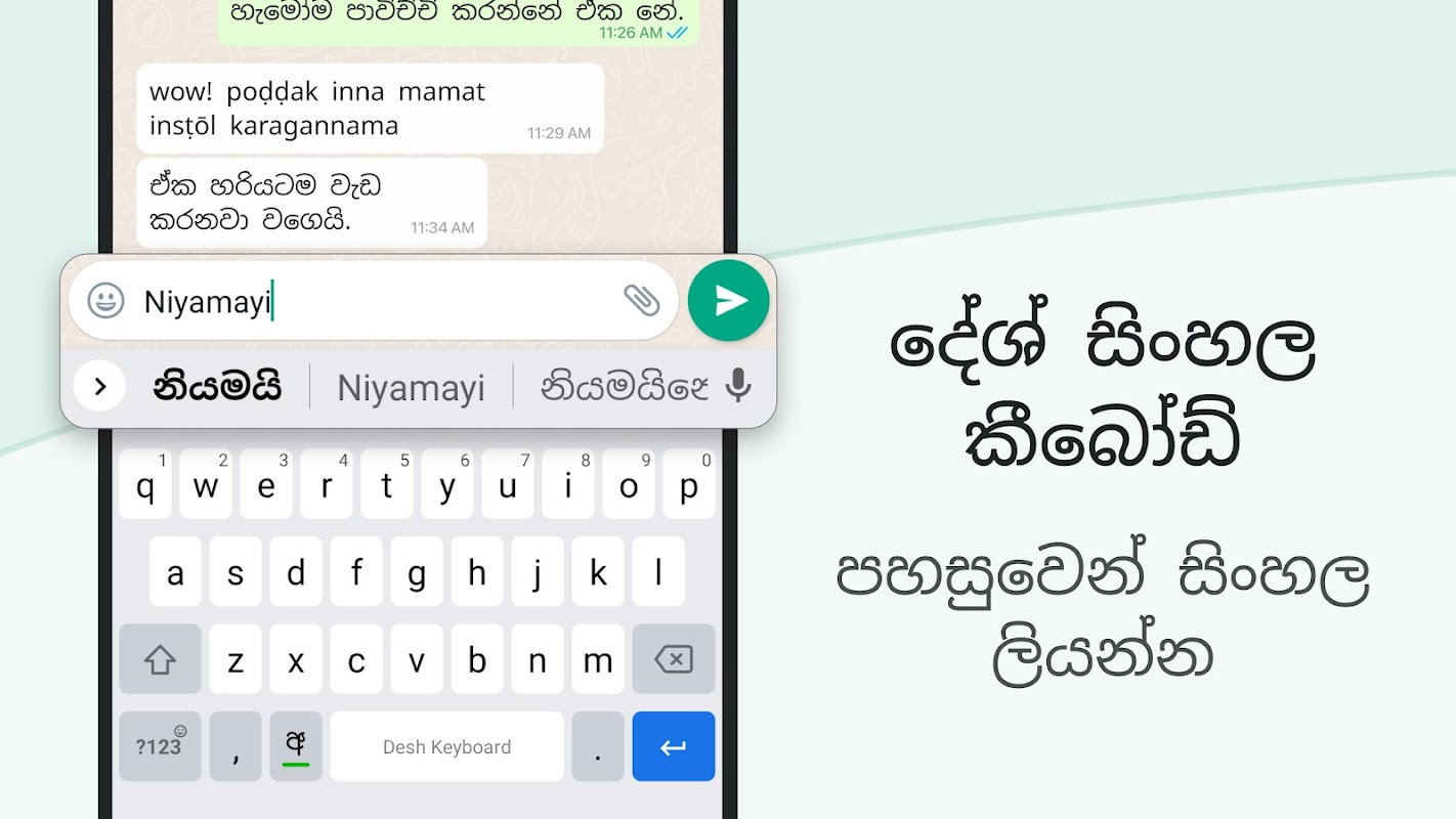 Berbual dengan rakan dan keluarga anda dalam bahasa ibunda anda - gunakan teks Sinhala asli pada mana-mana apl sembang atau media sosial pada telefon anda seperti papan kekunci biasa.