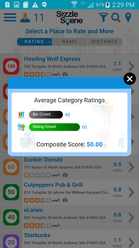 - Semasa anda berada di sesuatu tempat, pilih skor berdasarkan tahap orang ramai