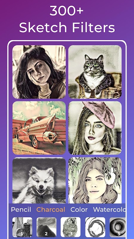 - Sketsa Pensil: Dapatkan sketsa foto detil dengan editor foto sketsa pensil kami yang canggih, sempurna untuk seniman sejati dalam diri Anda.