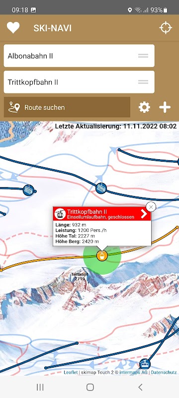 Panduan ski masa nyata interaktif untuk Ski Arlberg dengan semua data terkini, daripada peta antara: