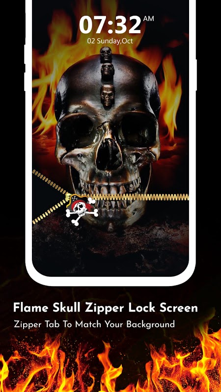 ** Skrin kunci Burning Skull Zipper 2022 melindungi privasi anda