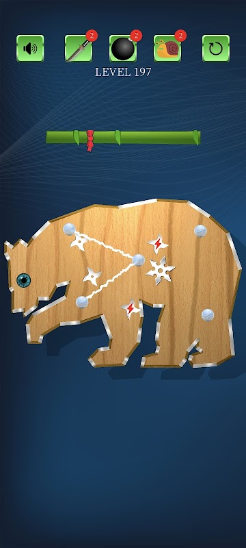 · PERATURAN UTAMA: Potongan yang sah mesti meninggalkan SEMUA Shuriken pada sekeping kayu yang SAMA! Memisahkan mereka akan membatalkan pemotongan anda, membolehkan anda mencuba lagi tanpa penalti.