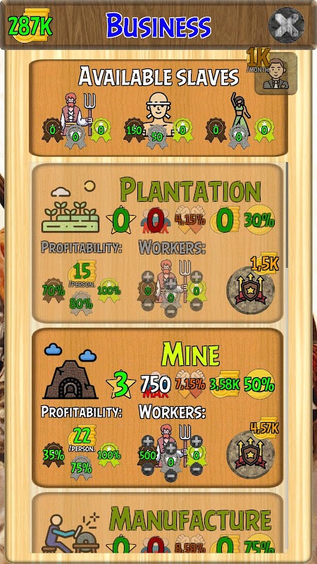 The best slave owner simulator for Android: Idle version. Buy and sell slaves, earn money, promote reforms.