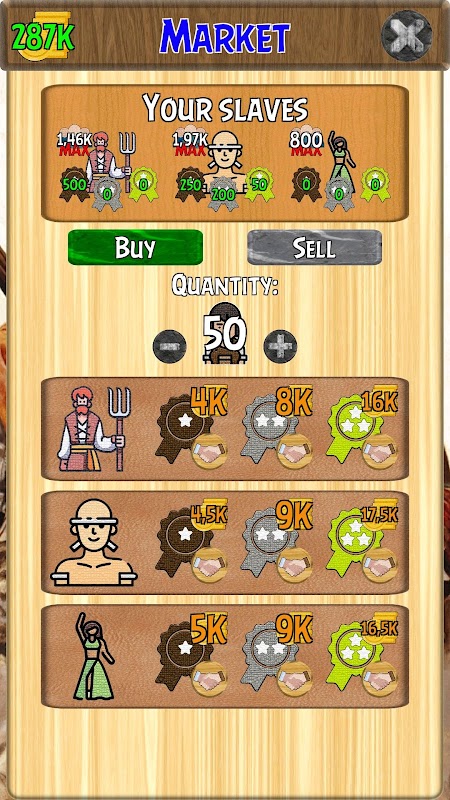 1. Buy and sell slaves on the market. Be careful as prices may change.