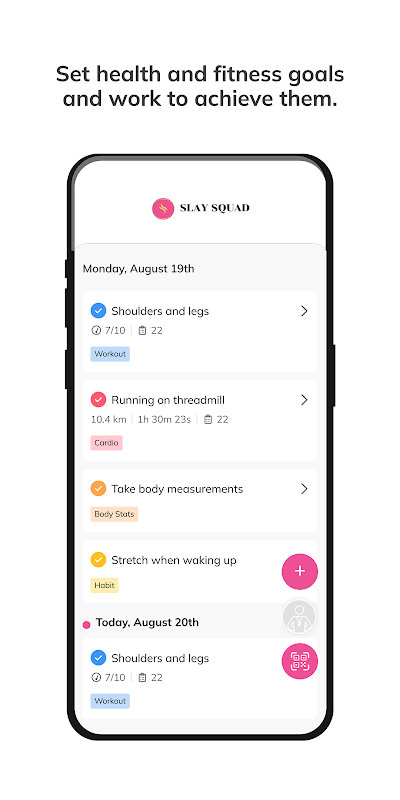 Dengan Aplikasi Slay Squad, anda akan mempunyai akses kepada program senaman yang direka khusus untuk membantu anda mencapai matlamat kecergasan dan kesihatan anda! Anda boleh mengikuti & menjejaki senaman anda, pemakanan anda, tabiat gaya hidup anda, ukuran dan hasil–semuanya dengan bantuan jurulatih anda.