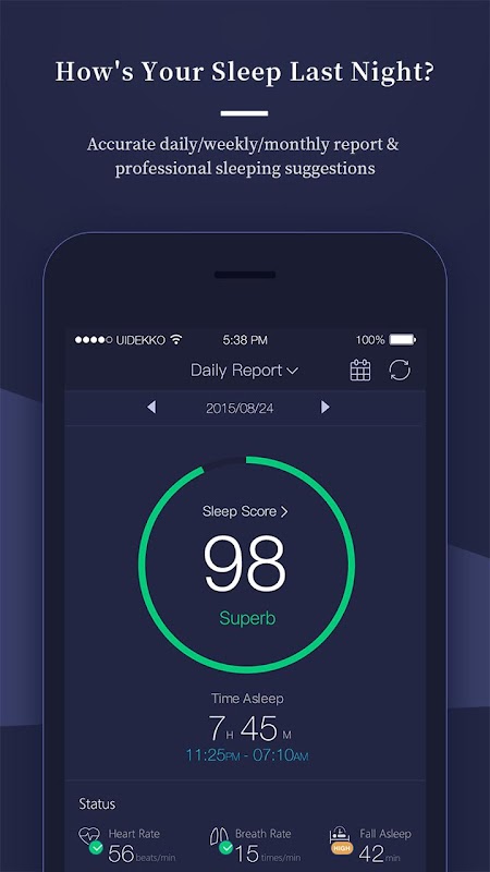 Accurate sleep monitoring and professional suggestions to improve your sleep quality, and even to build up good sleep habit