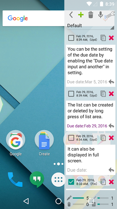 Since this app is displayed in front of the other apps, for example, you can take notes or confirm notes while watching a web page in a browser app.