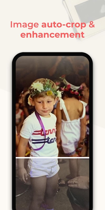 Algoritma pintar aplikasi secara automatik akan memotong, memutar, meningkatkan, dan menyimpan slaid sebagai foto digital dalam aplikasi.