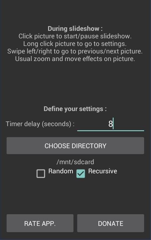 Simple tap = Pause/Reprise du diaporama