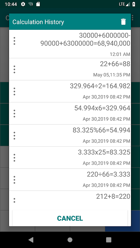 - Records every calculation with its timestamp in Calculation History with following features