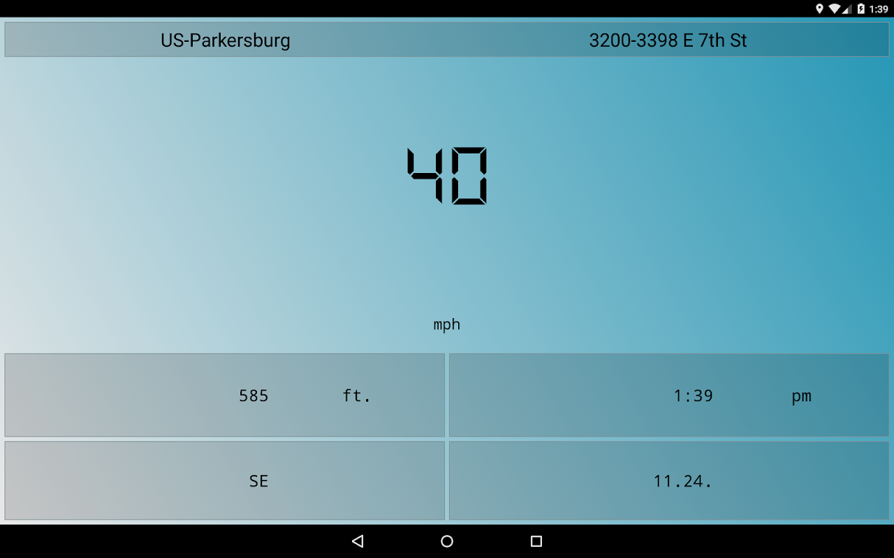 -Clicking on a gps-, time- or date display launches a cockpit-view. In this view you can see the current velocity, altimeter, driving direction, time and date. Depending on which mentioned element was clicked in the main-app, this element will be as large as possible in the center of the cockpit-view. All the other mentioned elements are placed around this element. The cockpit-view can be left again by clicking anywhere on the screen.