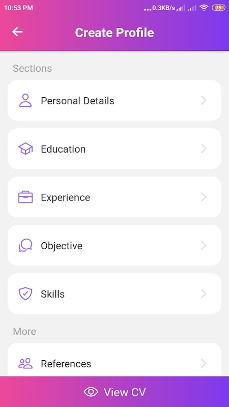 1. Mudah digunakan - sesiapa yang mempunyai telefon Android dapat menggunakan aplikasi Smart CV untuk membuat resume dan CV mereka sendiri. Isi semua maklumat, intinya, kelayakan, pengalaman, kemahiran dan gambar yang sesuai.