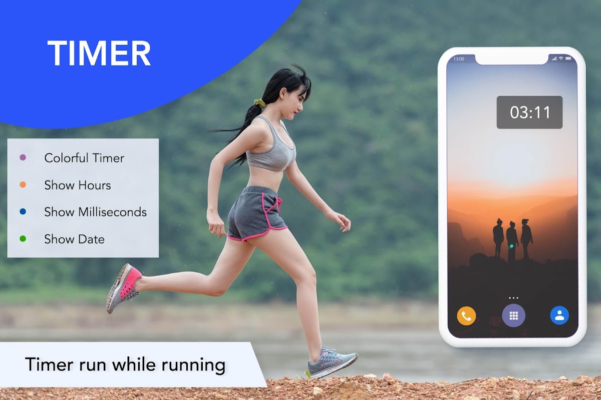 Tujuan utama aplikasi ini adalah anda dapat menggunakan jam, pemasa, dan jam randik semasa menggunakan aplikasi lain di telefon bimbit anda.