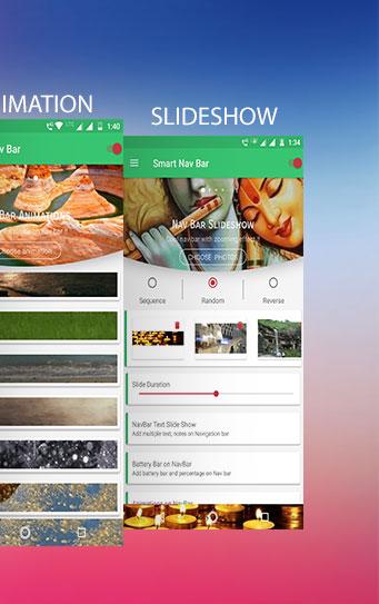 Terdapat banyak aplikasi navbar di playstore untuk pilihan penyesuaian navbar tetapi bar navigasi pintar membolehkan tayangan slaid navbar dari foto peribadi anda dengan animasi yang sejuk & anda boleh menambah nota, teks dengan animasi sejuk juga.